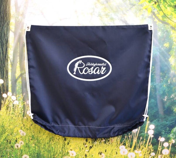 Neem je hobbyhorse overal mee naartoe met deze handige rugtas van Hobbyhorsestal Rosar! De tas is gemaakt van waterdichte stof en heeft het Hobbyhorsestal Rosar logo op de voorkant, waardoor hij niet alleen functioneel maar ook stijlvol is. Dankzij de stoppers kan de tas veilig gesloten worden, zodat je hobbyhorse altijd veilig en makkelijk mee te nemen is.